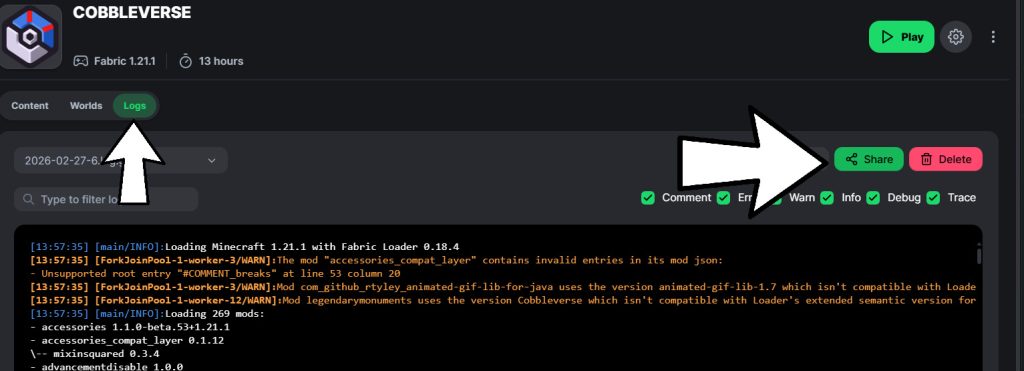 If you are running the modpack on a server, we may also need your server log. You can access it through your server’s control panel or FTP.