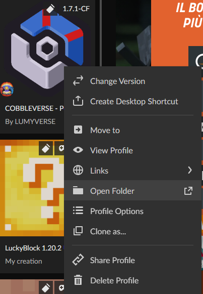 - Open the CurseForge app and right-click on the Modpack logo.
