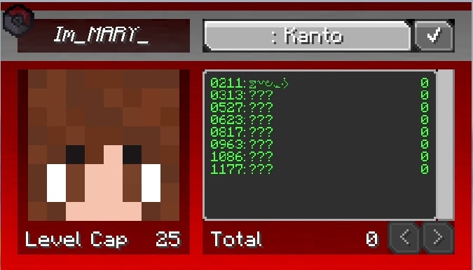 To challenge our trainers, you must first enter our custom series called KANTO. It’s completely automatic when you install the modpack and create new world. You can check in your Trainer Cards